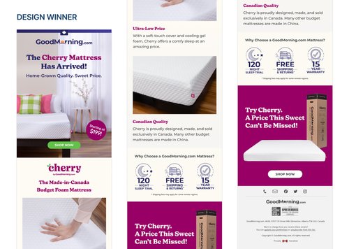 I used the layout I designed for the Cherry mattress launch and built the emails for the different sites we were launching this pillow on.